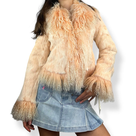 Pink & Tan Genuine Fur Jacket
