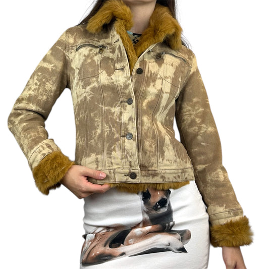 Bleach Pattern Denim & Genuine Fur Jacket