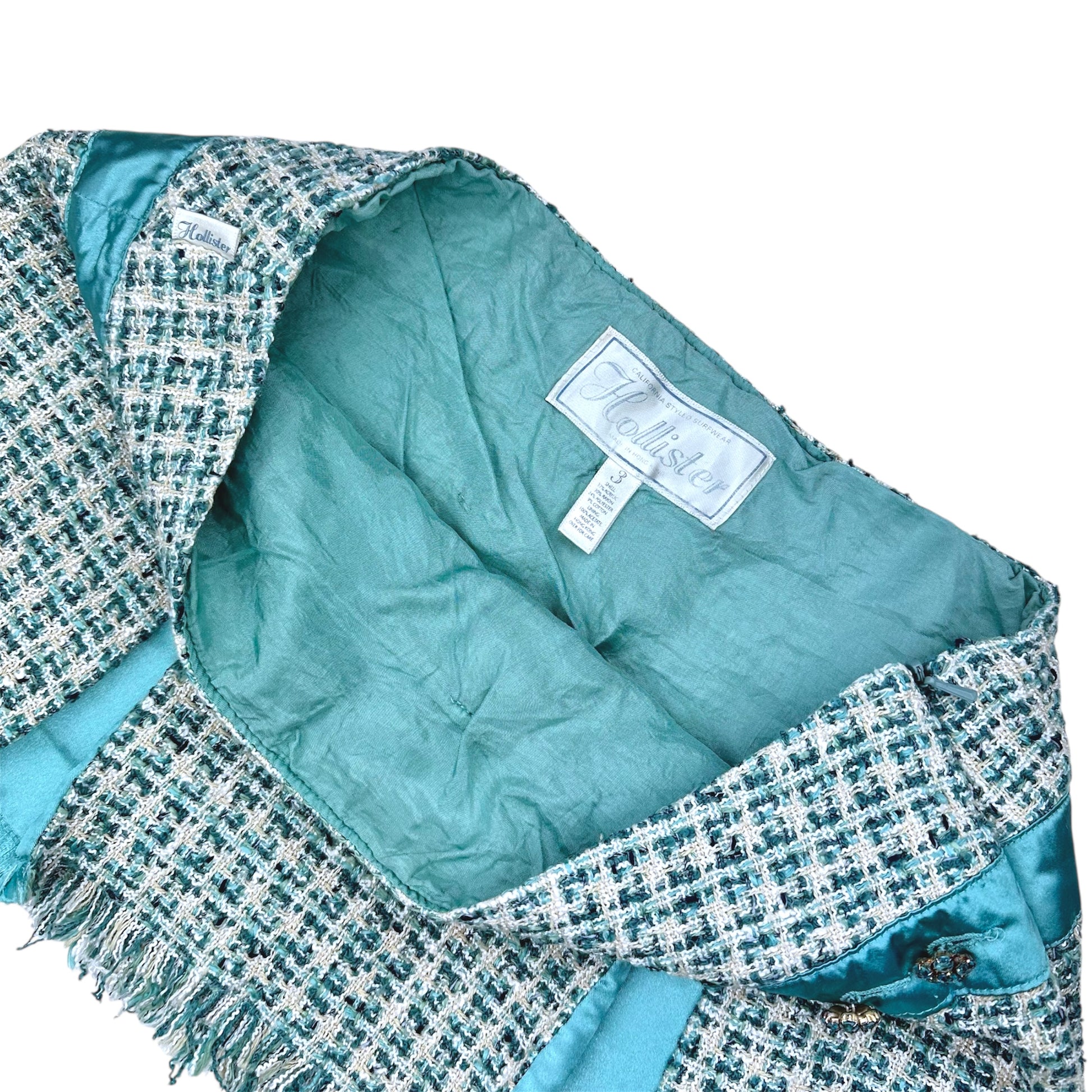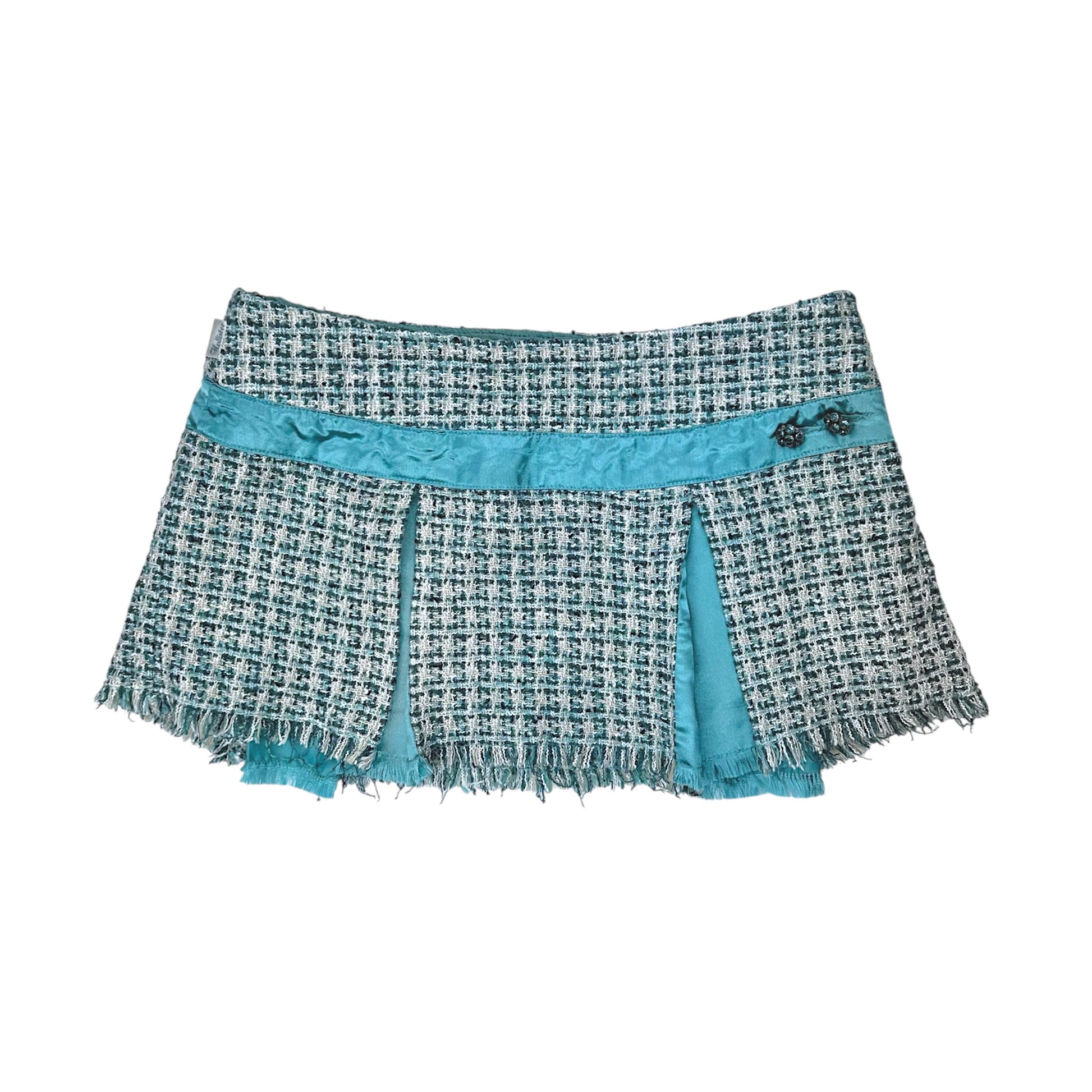 Gorgeous vintage Hollister pleated mini skirt in a stunning white and blue tweed